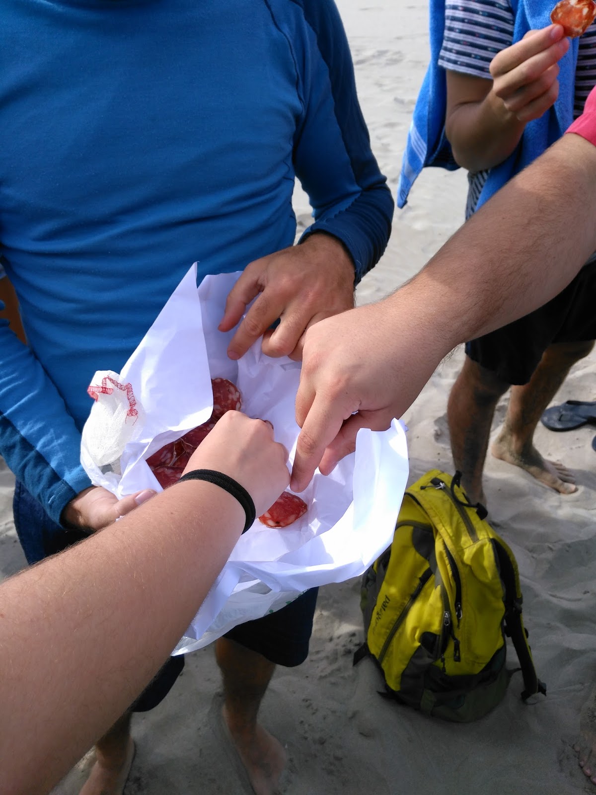 A la platja, el nostra guia Jérémy ens va fer tastar el salsitxó de toro. Boníssim!!